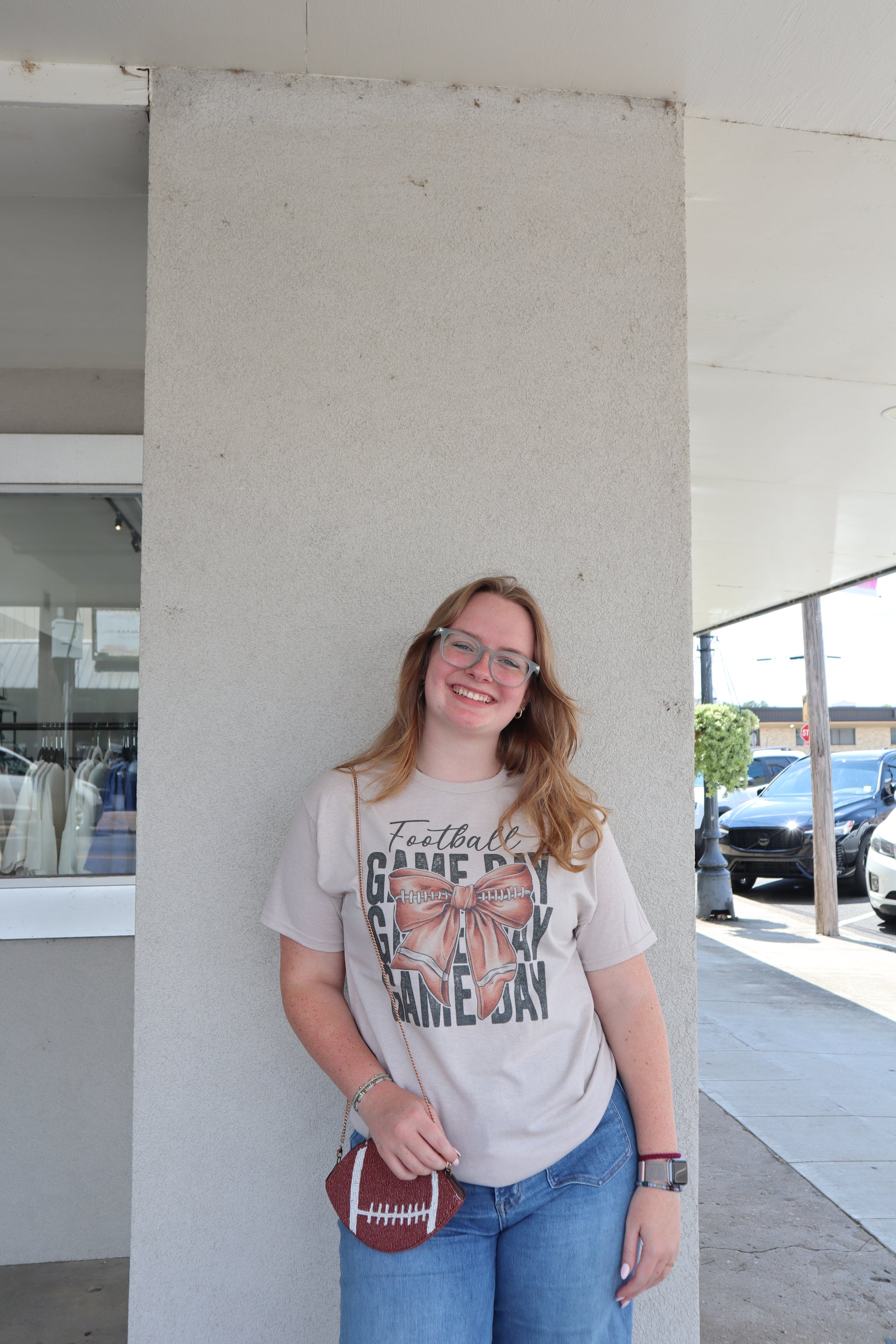 Get ready for kickoff with this playful Football Game Day Bow Tee! Featuring a charming brown bow design above bold "Game Day" lettering, this unisex tee brings fun style and comfort together. Perfect for cheering on your team or casual weekend wear, its relaxed fit suits everyone who loves football fever.