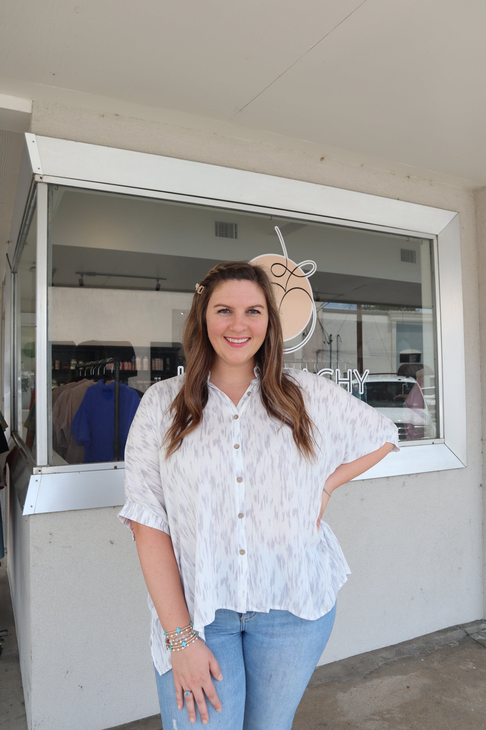 Get ready to add some whimsy to your wardrobe with our Whisper Mist Blouse. Made from gauze, this blouse features bubble dolman sleeves and a flowy silhouette, perfect for a carefree and playful look. (No more boring basics!)