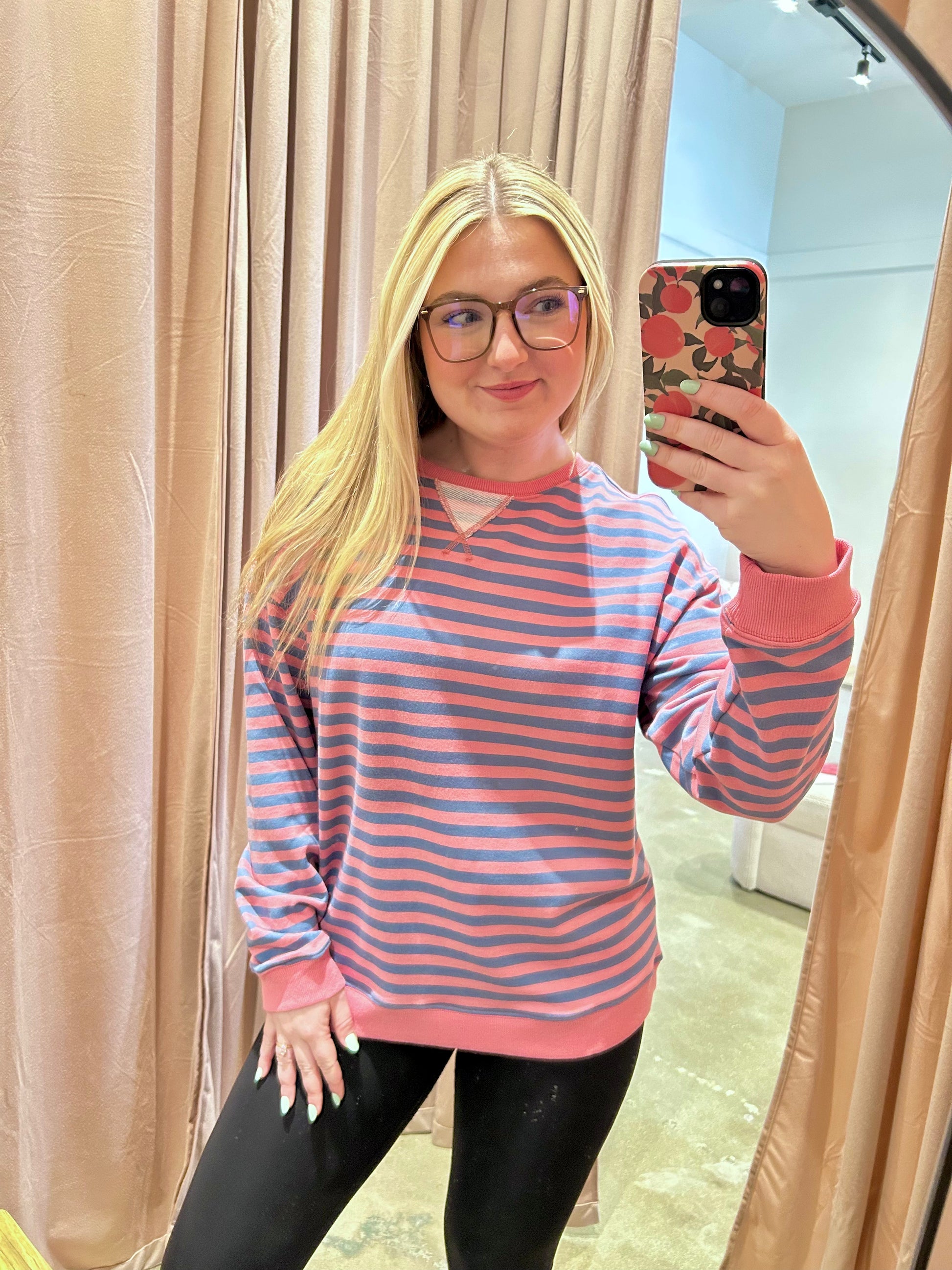 Get ready to fall in love with our You Had Me At Hello Sweatshirt! The pink & blue stripes will make you stand out in a crowd, while the oversized fit will keep you comfy and casual. Perfect for those fun and flirty days.